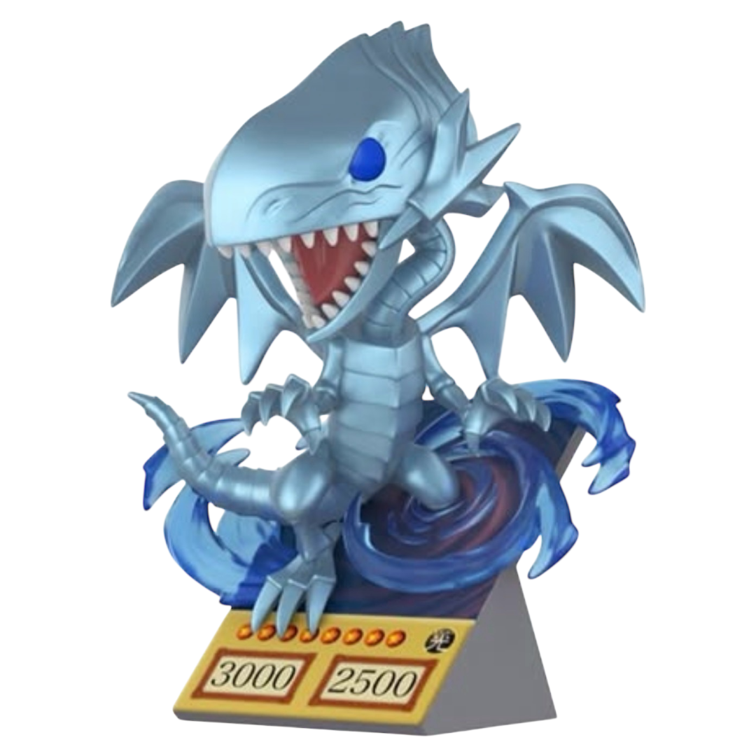 Summon the legendary Blue-Eyes White Dragon in this stunning Premium Funko Pop edition paired with its classic trading card display. The sculpt highlights the dragon’s majestic stance, battle-ready pose, and detailed energy effects that elevate its shelf presence. The card backdrop enhances the nostalgia of the original Yu-Gi-Oh! duels, making this piece both a display statement and a tribute to one of the franchise’s most powerful monsters. An essential addition for fans of Seto Kaiba and high-end Yu-Gi-Oh! collectors